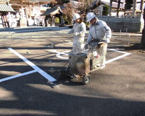 寺院・神社・葬儀場・霊園・メモリアルホールなど駐車場の白線ライン工事・車止め・番号(ナンバー)の施工例および区画線の費用・価格・単価・相場を見積書で公開。寺院・神社・葬儀場・霊園・メモリアルホール等の区画線ライン工事業者をお探しなら日建にお任せ下さい。見積り無料。